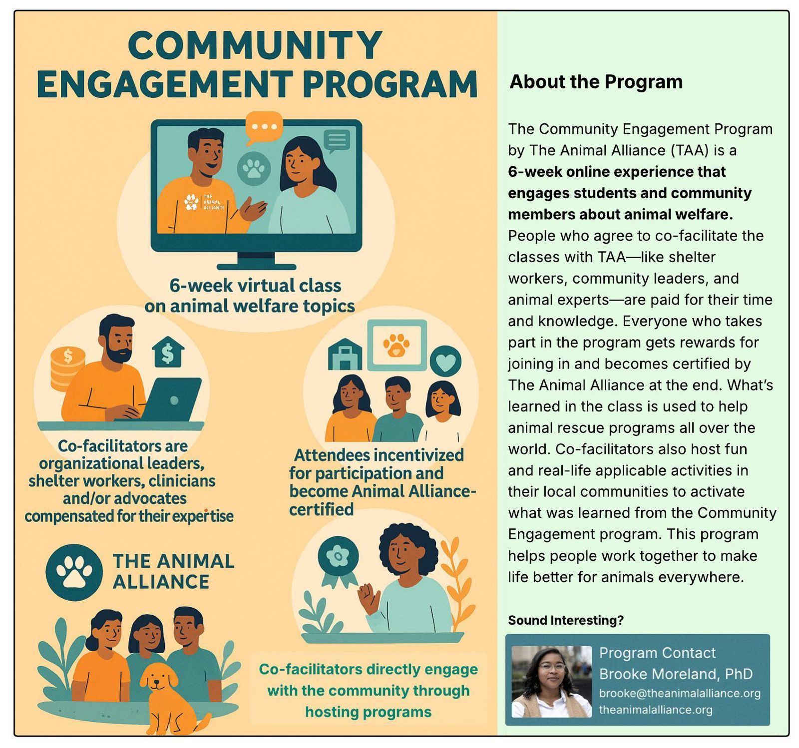 is a free, 6-week virtual course that brings animal welfare education directly to rural and urban communities across the U.S. In partnership with local organizations, this program connects participants with community leaders, builds relationships, and inspires real-world action through local events